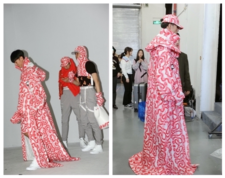 男装专业优秀毕业生冯章翀选取九龙贫民窟人们的生活为灵感进行设计延伸。在他看来,九龙寨城的人生活虽然贫苦,但是他们向往生活的美好,那是黑暗中的人性之光。