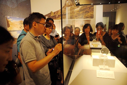 一件件精美的展品吸引着老师们的目光,大家不时驻足欣赏并拿出手机拍照。讲解员专业而细致的讲解,使老师们对西藏以及意大利文艺复兴期间的历史、文化发展等有了进一步的了解和直观的印象。参观结束后,中心组成员集体在首博牌楼前合影留念。