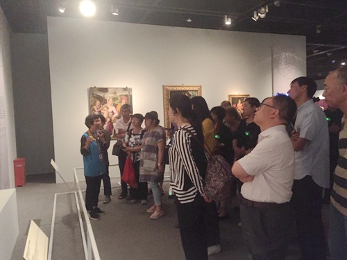 老师们首先来到“天路文华-西藏历史文化展”展厅,该展览以藏族及其历史文化和对于中华民族共同体的重要作用为展览主线,分别从文明溯源、高原天路、雪域佛韵、和同一家四个方面,展示了西藏的历史与文化,西藏与周边地区及内地的文化交往,体现出藏族在多民族统一国家形成的过程中所发挥的历史作用和为民族文化多样性做出的贡献。随后,在讲解员的带领下,老师们来到了“文艺复兴时期意大利艺术、文华和生活展”展厅。文艺复兴是意大利历史上最辉煌的文化运动之一,此次陈列的展品来自乌菲齐美术馆、巴杰罗国家博物馆、翁布里亚国家美术馆等意大利17家博物馆和机构,展览分为传统与创新、人是宇宙的中心、艺术与信仰三个单元,不仅包括了文艺复兴时期意大利的绘画,还有服装、日常生活用品和建筑影像,绝大部分展品是第一次与中国观众见面。