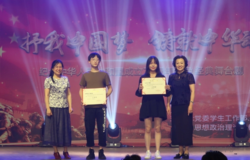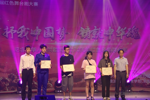 bb贝博艾弗森官网为深入学习贯彻习近平新时代中国特色社会主义思想,结合纪念五四运动100周年、新中国成立70周年,学校在广大师生中大力开展爱国主义主题教育活动。为弘扬爱国主义精神,传承民族精神和时代精神,由校党委牵头,党委学工部、校团委、思想政治理论课部、北校区联合主办了“抒我中国梦,铸就中华魂”第六届红色经典舞台剧大赛,活动于5月16日下午在北校区举行。党委书记马胜杰出席,党委宣传部部长苏小玲、思想政治理论课教学部主任张红玲、时尚传播学院党总支书记徐剑、北校区主任单兵、校团委副书记王晓鸥及北校区各学院、各职能部门负责人参加。同时北校区党建共建单位北七家镇曹碾村书记王茂胜、太阳城社区居委会党支部副书记张建华,我校团委学生会秘书长陈啅、北校区党建专职组织员张秀清及北校区第一学生党支部书记鲁义松作为大赛评委,为各学院的表现进行打分。
