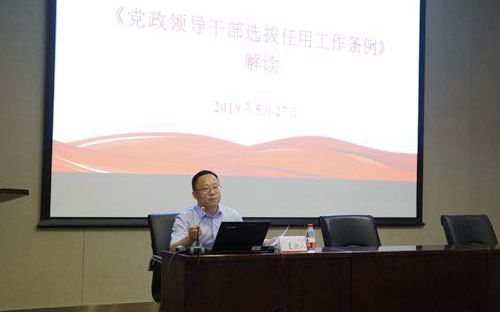 会上,党委常委、党委组织部部长殷文生重点解读了中共中央新修订印发的《党政领导干部选拔任用工作条例》,从修订特点、主要内容等方面阐述了文件颁布的重大意义、修订的重点内容,对我校下一步学习贯彻开展工作进行了介绍。
