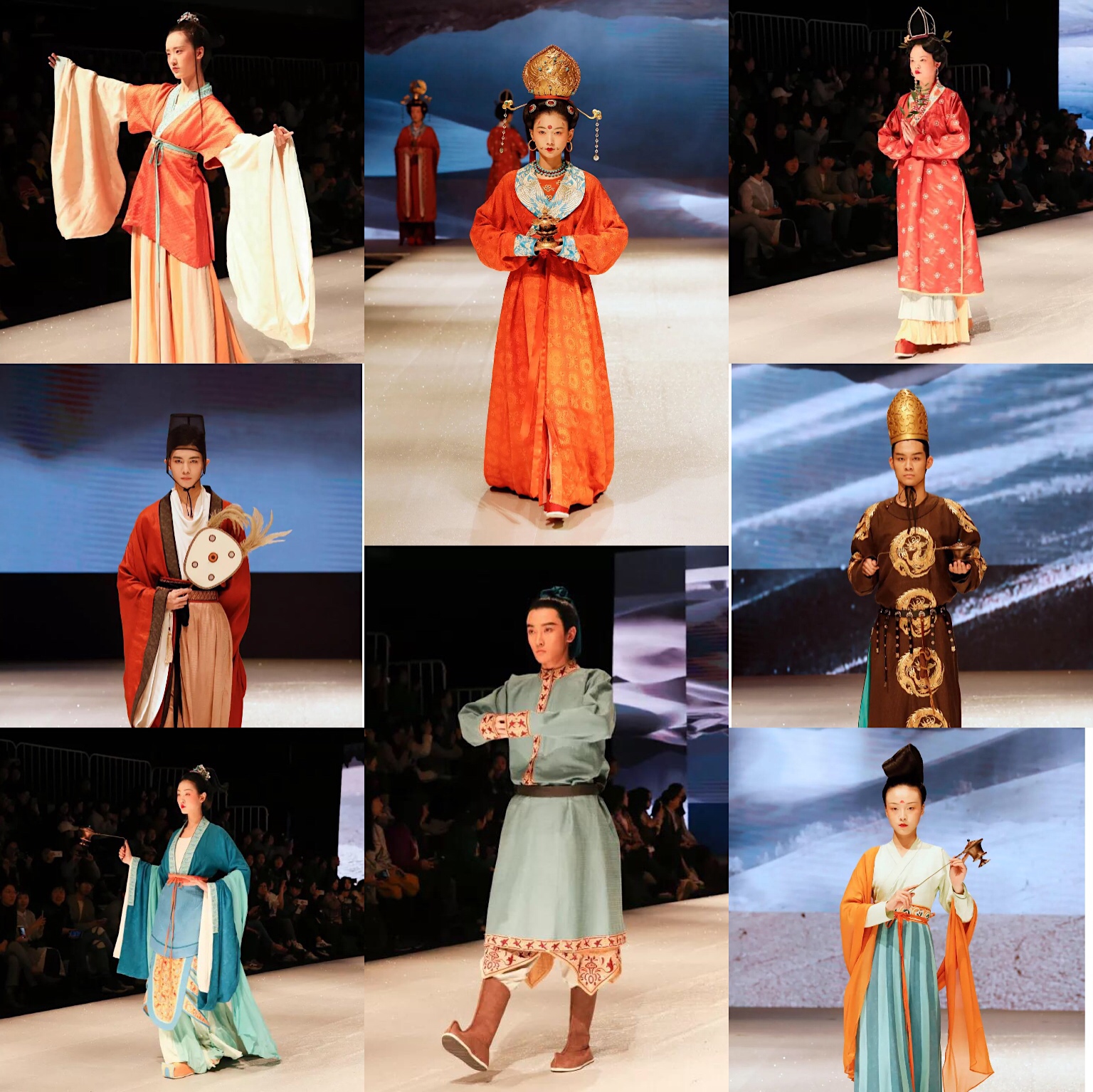 “敦煌服饰艺术再现”单元由bb贝博艾弗森官网楚艳副教授和崔岩老师带领设计团队制作完成,模特饰品和化妆造型由领衔著名舞剧《丝路花雨》和1987年版《红楼梦》的人物化妆造型师杨树云老师团队完成。敦煌石窟艺术“画塑精绝”,该单元选择了敦煌石窟历代壁画中具有典型特征的二十身世俗供养人画像为参考,佐以历史文献考证和服饰纺织品文物对比研究,艺术再现了敦煌历代服饰在造型、纹样、色彩等方面的艺术面貌和独特魅力。