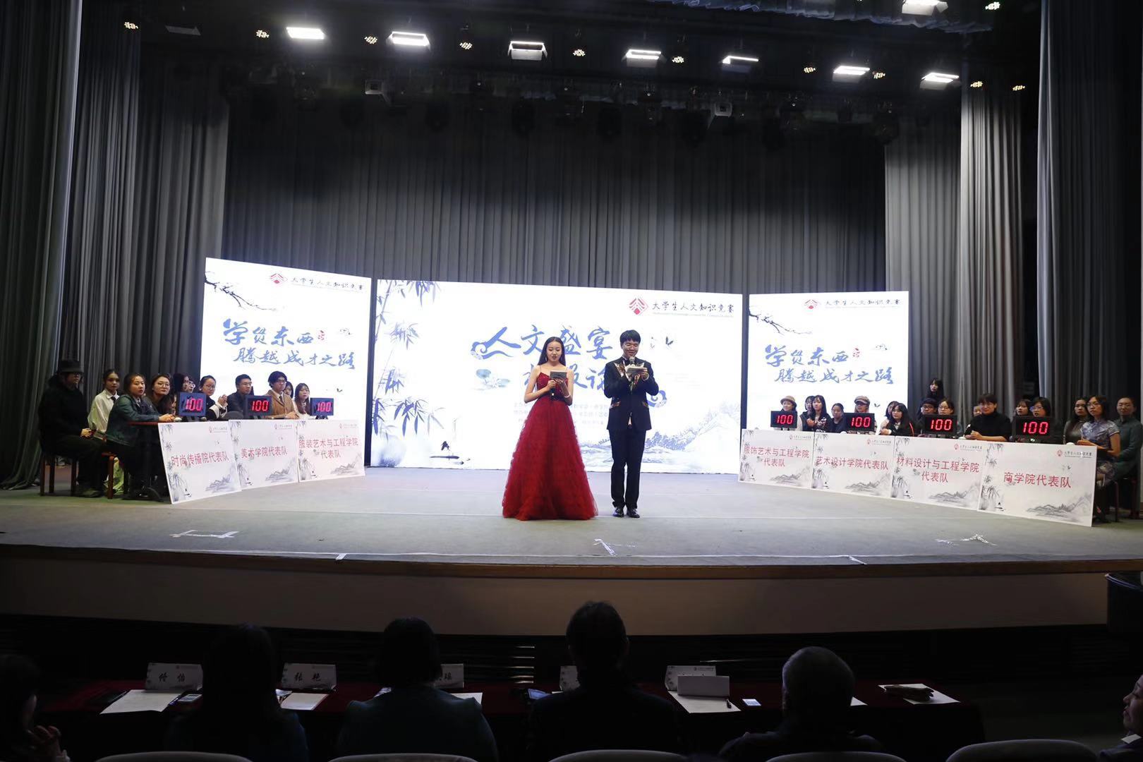 为深入学习贯彻党的十九大会议精神,提升师生的人文素养,坚定文化自信,献礼中华人民共和国成立70周年, 10月24日下午,一场题为“人文盛宴,北服论剑”的bb贝博艾弗森官网第八届大学生人文知识竞赛决赛在大礼堂成功举办。此次活动由思想政治理论课教学部、商学院共同主办,党委宣传部、教务处、党委学生工作部、校团委联合协办。北京舞蹈学院思政部主任张艳、中国音乐学院思政部主任佟怡,我校商学院党委书记梁宇、教务处处长席阳、招生就业处处长孟庆瑶、北校区主任单兵、学生工作部(处)副处长陈森、思想政治理论课教学部主任张红玲、思想政治理论课教学部董瑞侠教授,各院系党委(总支)副书记和辅导员、思想政治理论课教学部全体教师以及400余名学生观看了比赛。