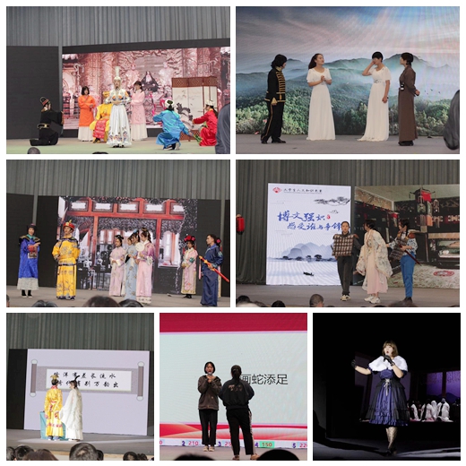本届比赛经初赛笔试选拔,共有28位同学脱颖而出,他们以院系为单位组成7支队伍参加决赛。本届决赛题型丰富,分为抢答题、快速答题、猜词题和人文演绎四个环节。