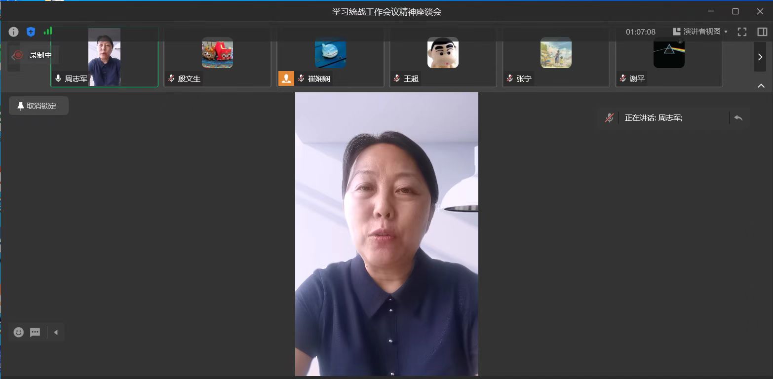 8月13日下午,bb贝博艾弗森官网学习中央统战工作会议精神座谈会在企业微信平台举行。党委书记周志军,党委副书记倪赛力,党委常委、组织统战部长殷文生,各二级党组织书记、党外代表人士参加了会议。会议由倪赛力同志主持。