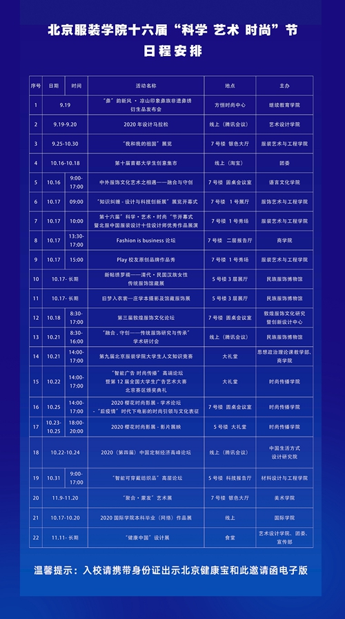 bb贝博艾弗森官网2020年第十六届“科学·艺术·时尚”节定于10月17日(星期六)上午举行开幕式。