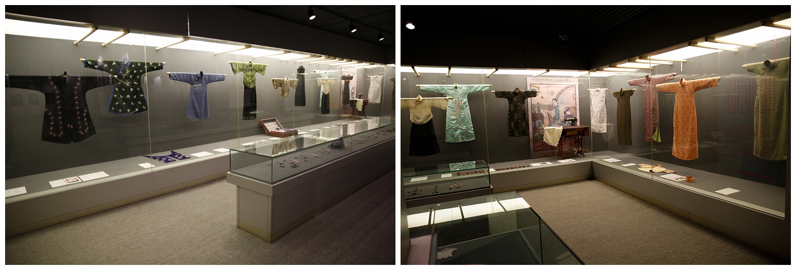 展览共分为三个单元:第一单元为“清代汉族女性传统服饰”。主要展示清中期至晚期上层社会汉族女性穿用的袄、褂、衫、裙等传统服饰,绚丽的纹饰和精致的工艺代表了清中晚期华丽繁复的装饰特色和审美风格。