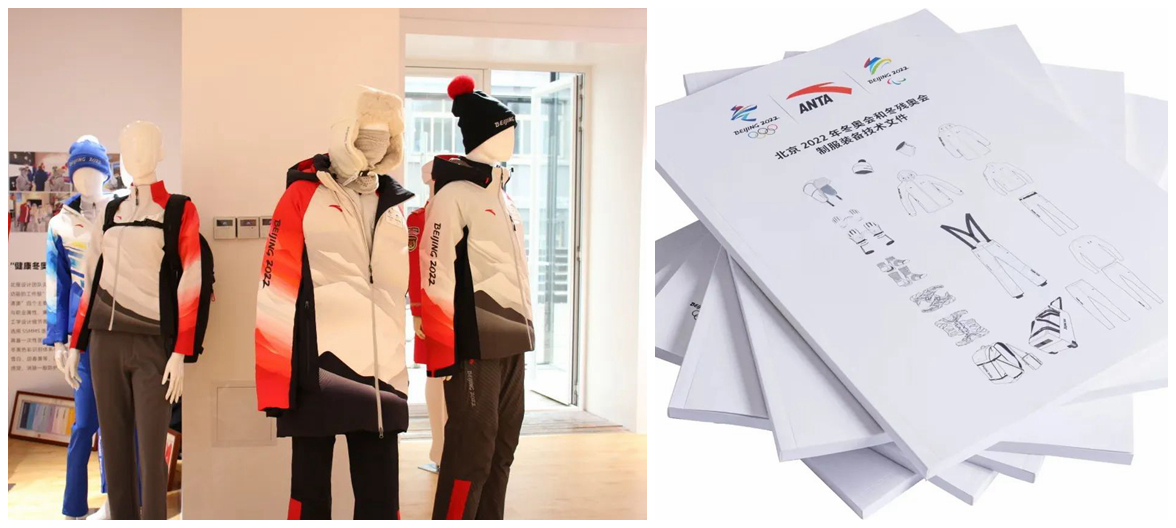 制服装备遗产文件包含参照同类产品的国家和行业标准,通过实地多人测评,中纺标、中国标准化研究院等权威测试机构密集开展理化实验室和低温气候舱测试,北服团队联合中纺标(北京)检验认证股份有限公司和安踏公司制定《北京2022年冬奥会和冬残奥会制服装备成品验收标准》,以及集面料册、辅料册、板型工艺册为一体的《北京2022年冬奥会和冬残奥会制服装备技术文件》。另外,《制服穿着与护理手册》详细地介绍了制服设计思想、品类特色及穿搭方案,并对穿用场合和政策进行了相应规定,明确了制服装备作为穿着人员专属身份标识和荣誉的作用属性,为正确穿用和适当护理制服装备提供了有效指导。