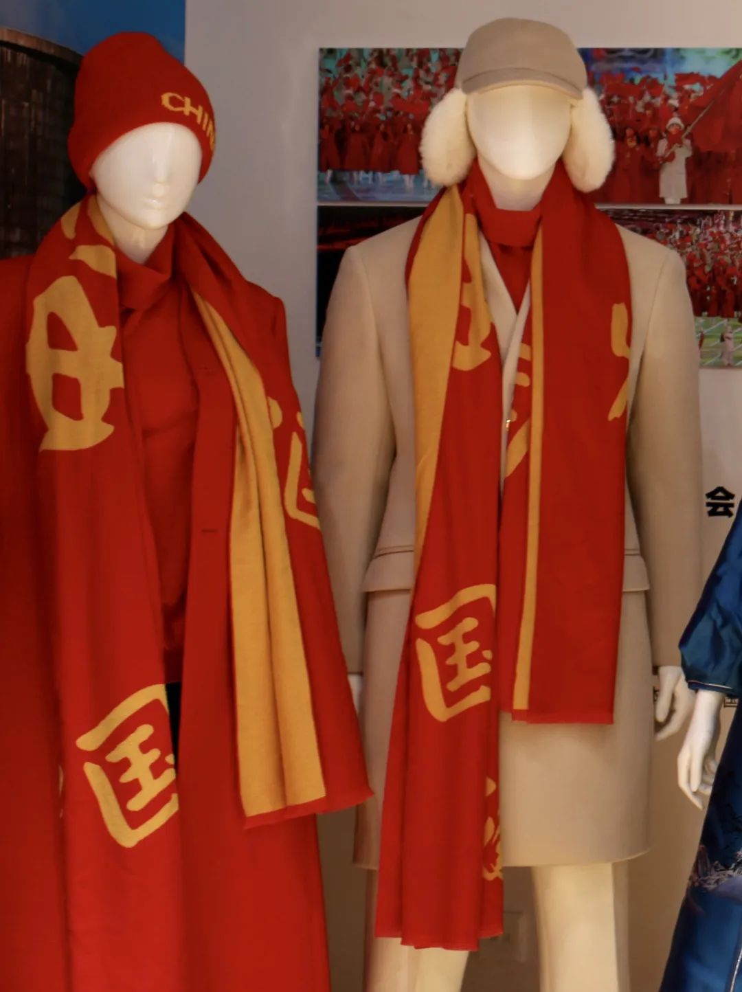 设计主题为《中国风采》。设计团队以中国传统最高等级的色彩之一——红色为基调,既突出热烈喜庆的氛围,表达了中国人民的热情友好,也体现了中国奥运健儿积极向上、勇于拼搏的精神。