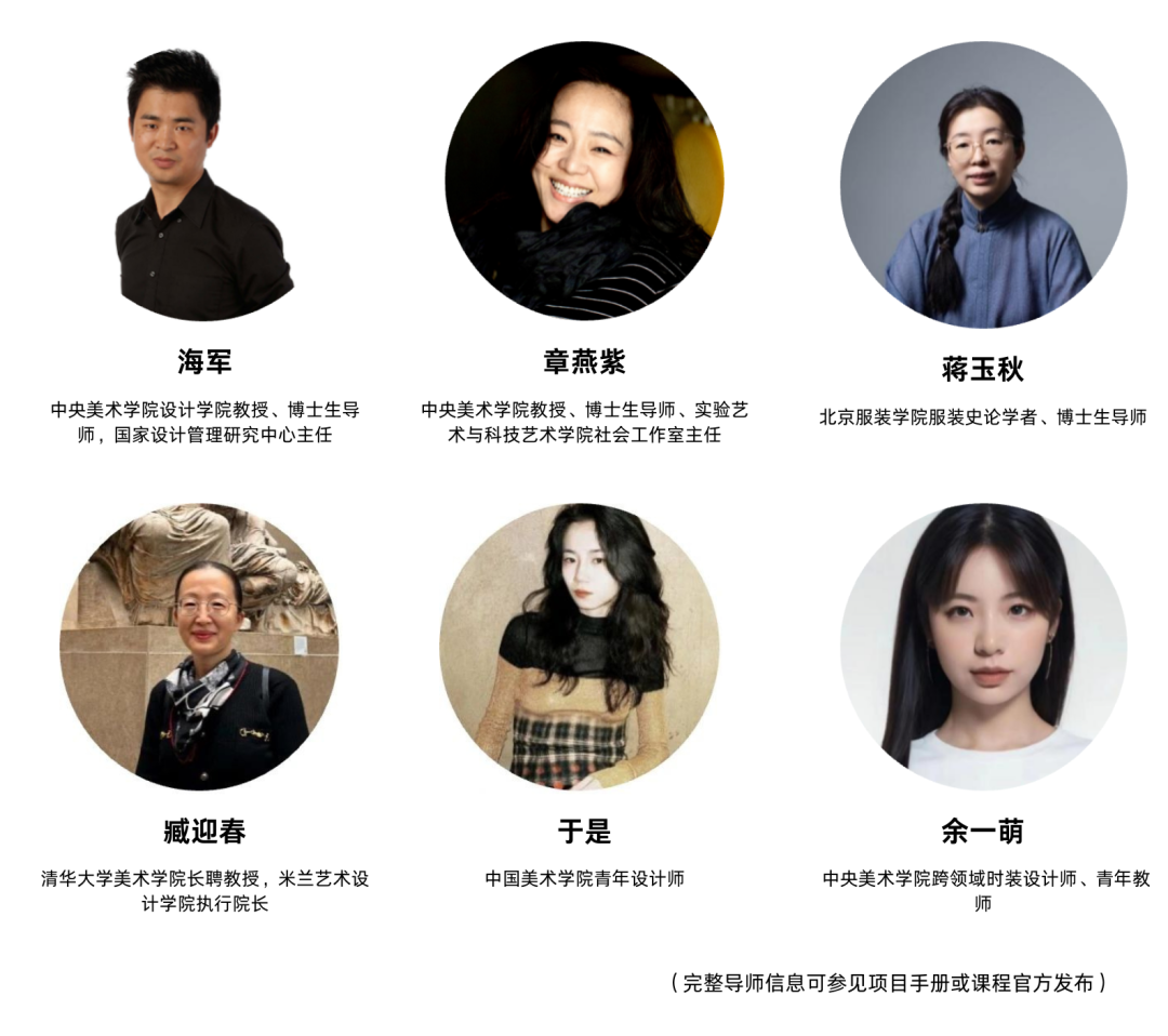 课程邀请中国及国际时尚、艺术、文化领域众多领袖和专家共同授课。主要导师包括(按姓氏笔画排序)
