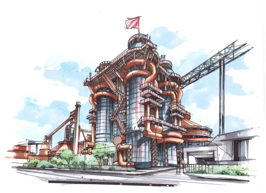 王天奇实习期间手绘作品——三号高炉(奥组委院内)