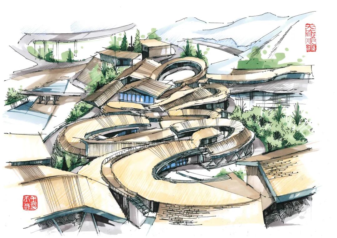 王天奇实习期间手绘作品——国家雪车雪橇中心