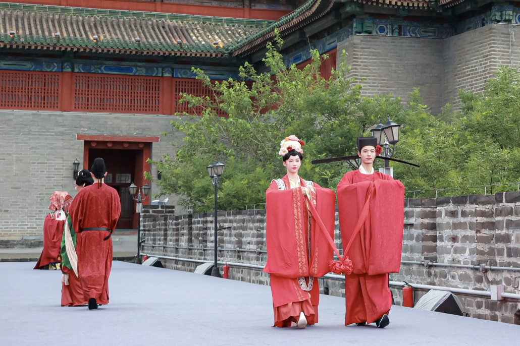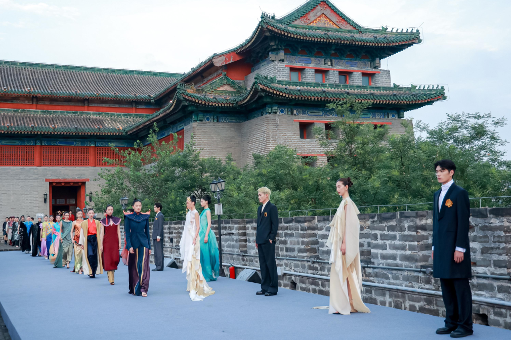在动态展演环节,六十五套华服在光影中翩跹流转,通过“复原—融合—创想”三幕叙事,诠释了中华服饰文化从传统基因中生长出的当代生命力。“礼韵山河”篇章中,古代复原服装走出实验室,金线在城垣光影中流转千年礼制;“经纬新生”篇章,新中式美学融合创新传统服饰文化,表现北京当代都市文化品格与精神内涵;“未来织造”篇章,数字虚拟概念服装与实物结合,3D打印技术融合新材料,探索服饰科技美学的发展方向,表达东方人文情怀。通过bb贝博艾弗森官网时尚传播学院表演专业学生匠心独具的设计演绎,让深藏于古籍典章中的大明风韵,在首都核心区澎湃新生,灵动绽放。依托明城墙历史空间,师生团队将学术研究转化为公众可感的艺术呈现,将“新文科”建设与在地文化服务深度融合,让学校的学术智慧为东城区文化强区建设注入源头活水。