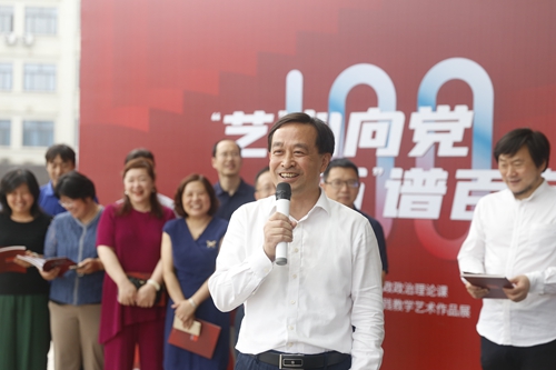 首先,倪赛力代表学校致辞。他说,中国共产党迎来了百年华诞,本学期以来,全校师生积极参与党史学习教育。在思政部和美术学院老师们的共同努力下,同学们积极进行创作,表达了对党的一片赤诚之情和永远跟党走、建设中国特色社会主义的信心和决心,也体现了教育工作者的使命担当。今年是“十四五”开局之年,也是两个百年奋斗目标交汇期的关键节点,学校全面落实立德树人根本任务,广大教师要立足岗位“三全育人”,广大学生要刻苦努力、成长成才,充分利用大好历史时期,为党、为国家、为人民做贡献。