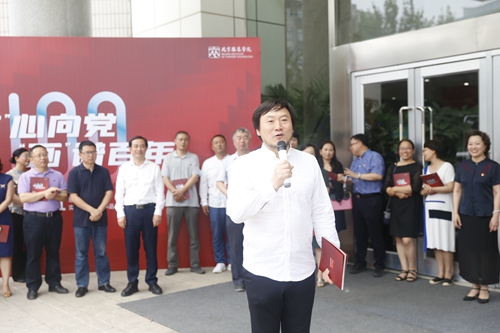 6月28日上午10:00,由思想政治理论课教学部和美术学院主办、教务处和学生处协办的”艺“心向党 ”画“谱百年——2021思想政治理论课实践教学艺术作品展在5号楼一层大厅开展,院长贾荣林、校党委副书记倪赛力、党委常委、副院长詹炳宏、各二级学院、相关职能部门负责人、思政部专兼职教师和部分学生代表参加开幕式。《北京教育(德育)》执行主编杜华、北京化工大学马克思主义学院党委书记张馨、中国音乐学院思政部主任佟怡应邀出席。开幕式由北服思政部主任张红玲主持。
