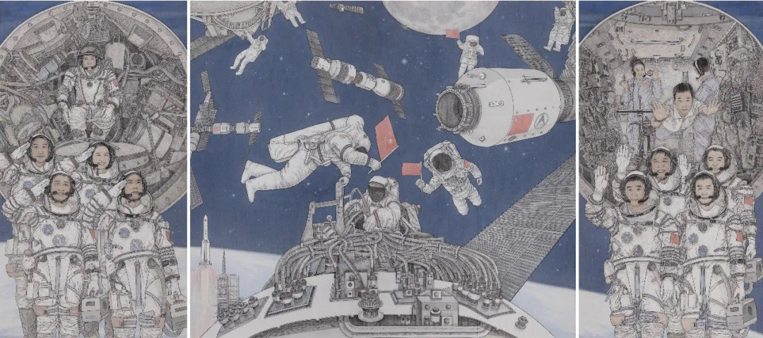 《飞天圆梦》/ 中国画 / 600×250cm / 2021年
