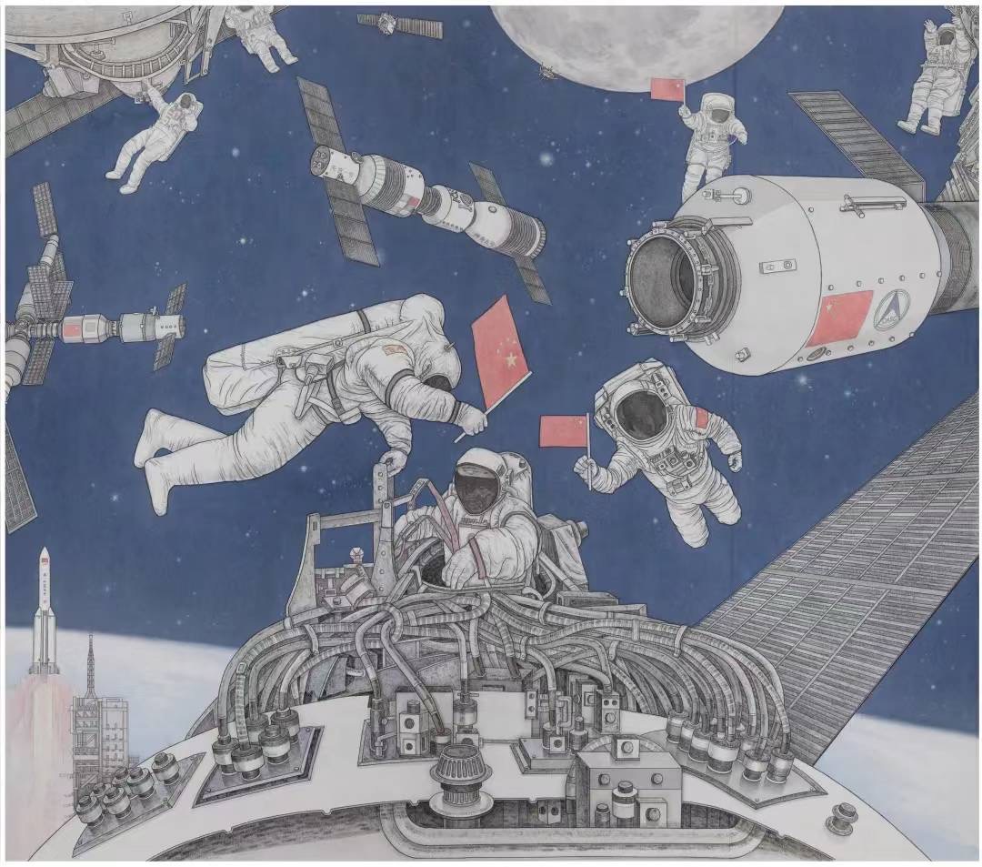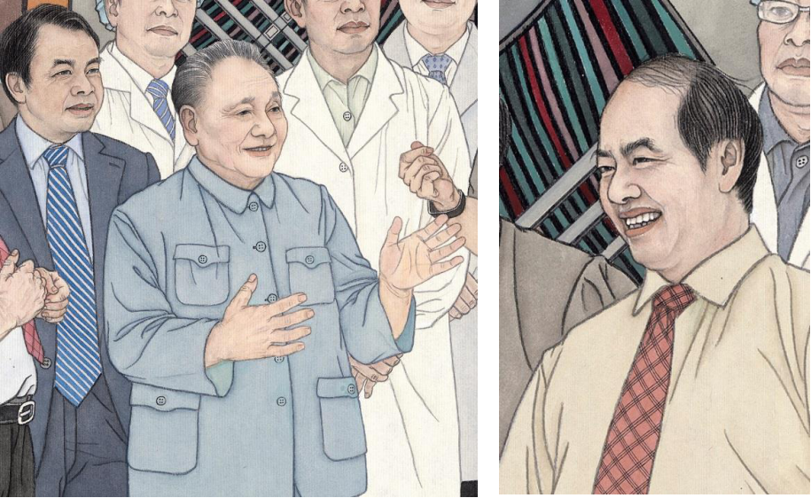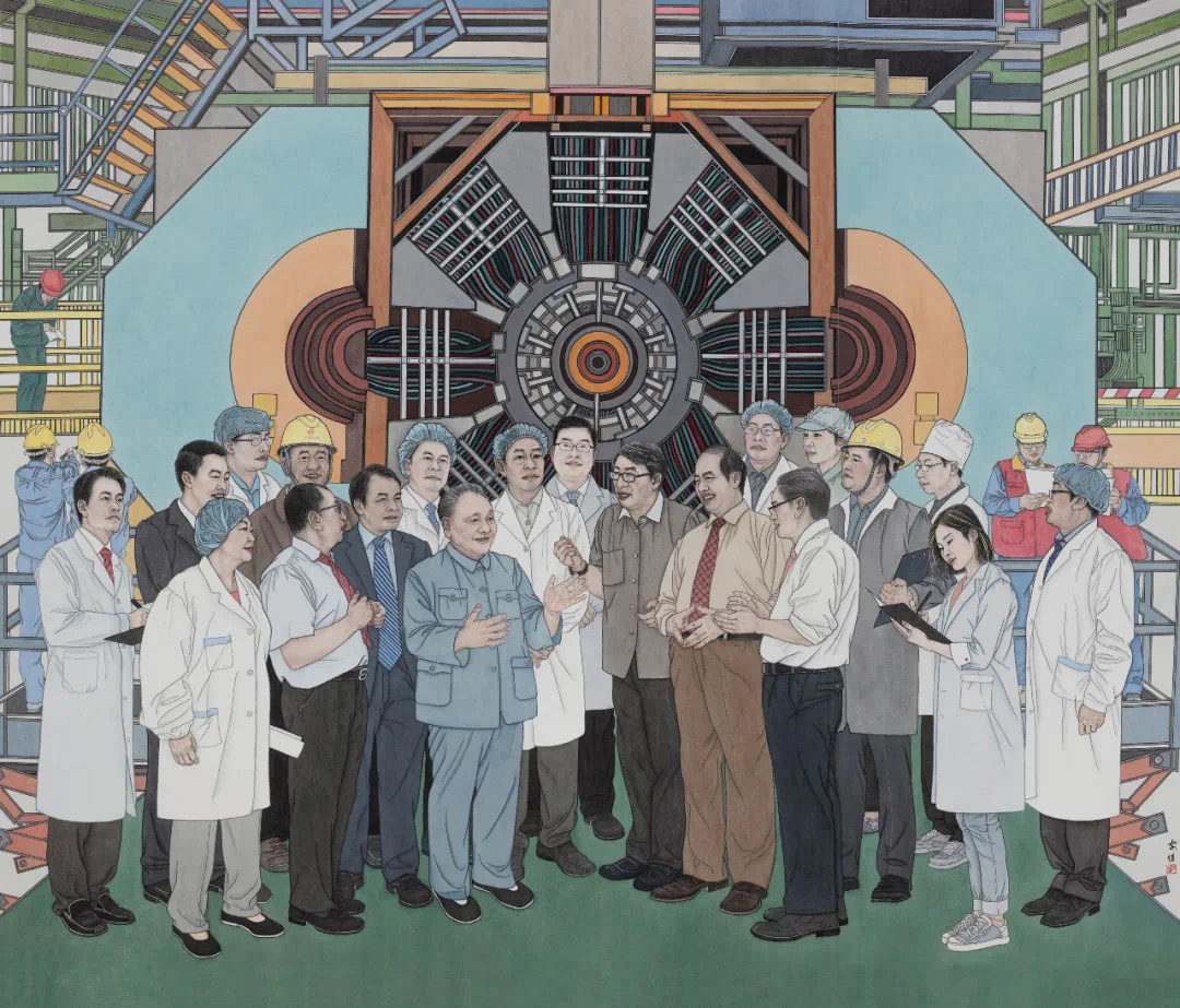 《邓小平参观北京电子对撞机》/ 中国画 / 300×275cm / 2021年