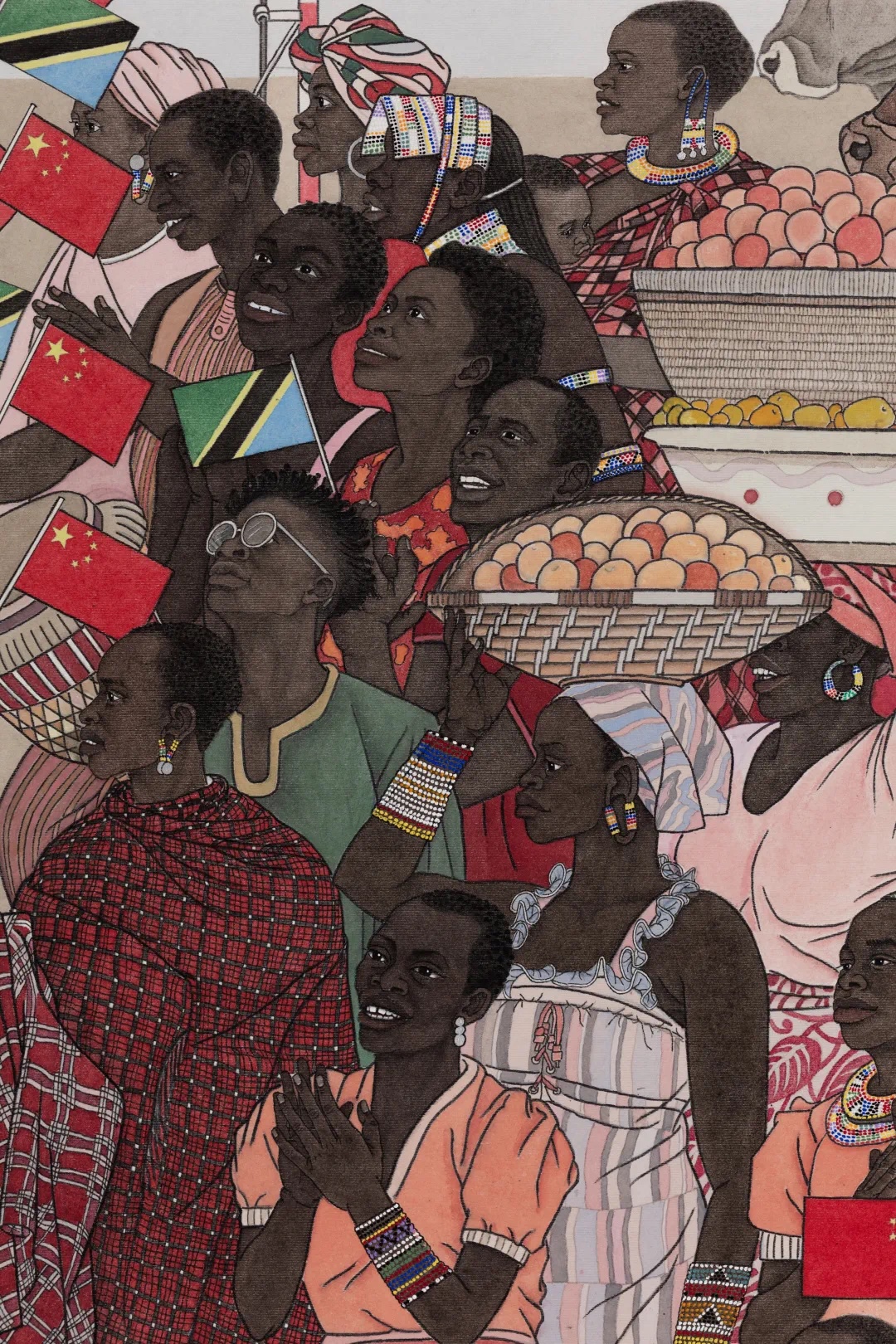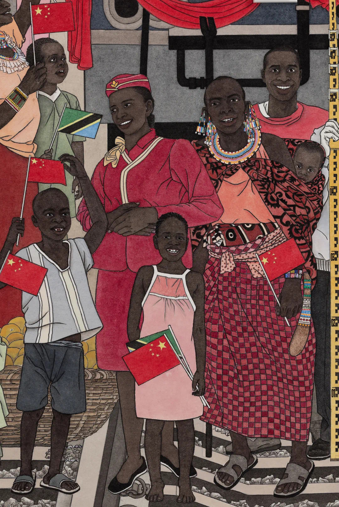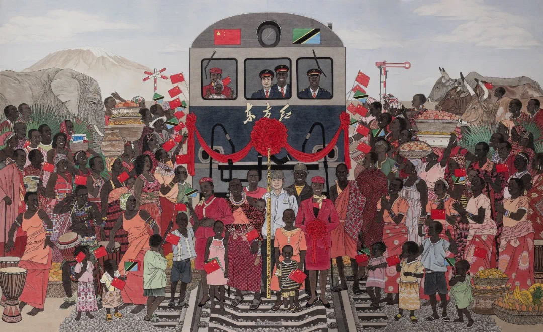 《纪念坦赞铁路援建52周年》/ 中国画 / 400×240cm / 2021年