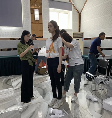 在参与任务的过程中,为了达成目标需要团队通力协作。由服装艺术与工程学院郭瑞良副院长带领的保障团队同样功不可没,从几千人的量体裁衣,到在依托大数据信息化的争分夺秒,准时、准地、准数的物料送达。实实在在地演绎了北服一直在探寻的产学互动,校企联合的多赢合作模式。这体现的是整体的力量,集体的智慧和输出。从个人到团队,从设计师到物料组,每一位参与者都倾尽全力,发挥专业特长,突破限制,不断创新。