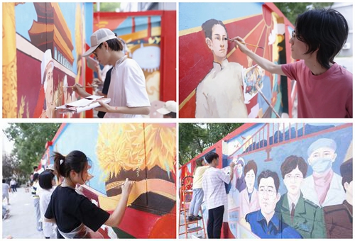 参加此次墙绘的水思源同学说,“一百年来,中国共产党人始终以人民为中心,坚持真理,践行初心、担当使命,不怕牺牲、英勇斗争,不负人民,以“为有牺牲多壮志,敢教日月换新天”的大无畏气概,开辟中国特色社会主义的伟大道路、伟大事业和伟大成就,带领全体中华儿女奋力书写出中华民族历史上最为恢宏的史诗。在中国共产党成立100周年之际,我们新一代青年学子要始终铭记这波澜壮阔的百年历史,深切怀念为中国革命、建设无私奉献和英勇牺牲的革命先烈。今天我们用画笔将党的一段历史绘在墙上,希望能够时时令人们感怀与铭记,这便是我们对建党100周年的最好纪念!”