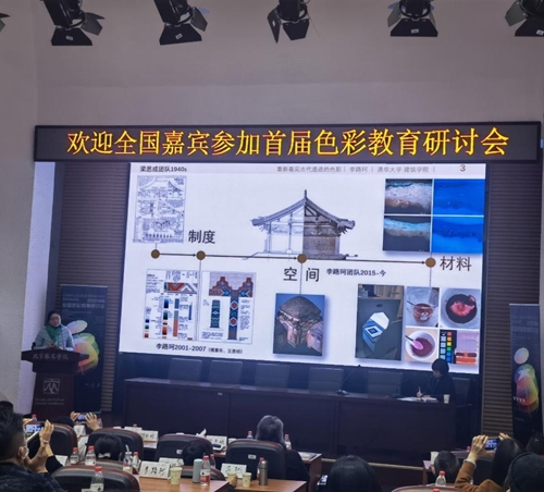 第二场研究生色彩课程建设主旨演讲环节由成朝晖教授主持,江南大学设计学院张毅教授、清华大学建筑历史与理论专业李路珂副教授、内蒙古工业大学建筑学院李楠副教授、北京邮电大学数字媒体与设计艺术学院盛卿副教授分别作了题为《刺绣色彩教学》、《重新看见古代遗迹的色彩》、《以教促研,以研促教:硕士色彩课程教学成果与思考》、《硕士学位课程“色彩研究”的教学实践与思考》大会报告,向来会嘉宾介绍了研究生教学理念、学科交叉等内容。