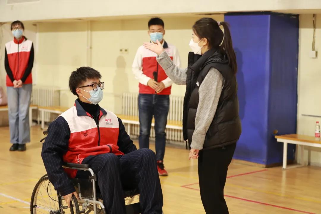 在活动中,我校赛会志愿者储备力量从细节出发,让残疾人在比赛过程中感受到温暖。赛会志愿者储备力量孙晓语这样说道:“因为很多残疾运动员都是坐着轮椅的,我们要俯下身尽量把身子调低一点跟他们进行沟通,以一个平等的视线跟他们交流。我们志愿工作者就是要把这种温暖的情感传递给他们。”