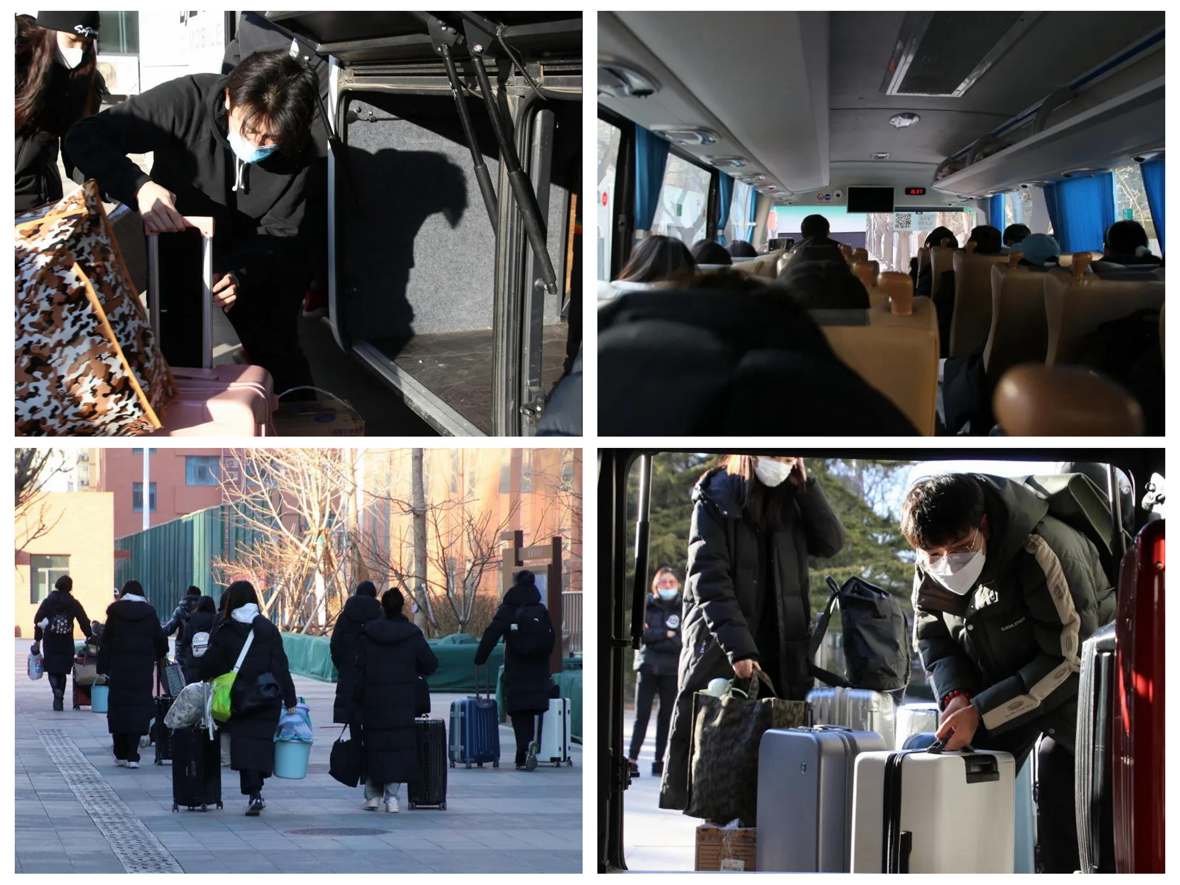 1月17日下午,bb贝博艾弗森官网北京2022年冬奥会和冬残奥会闭环外志愿者及演职人员集体从樱花园校区前往芍药居校区相对集中管理。