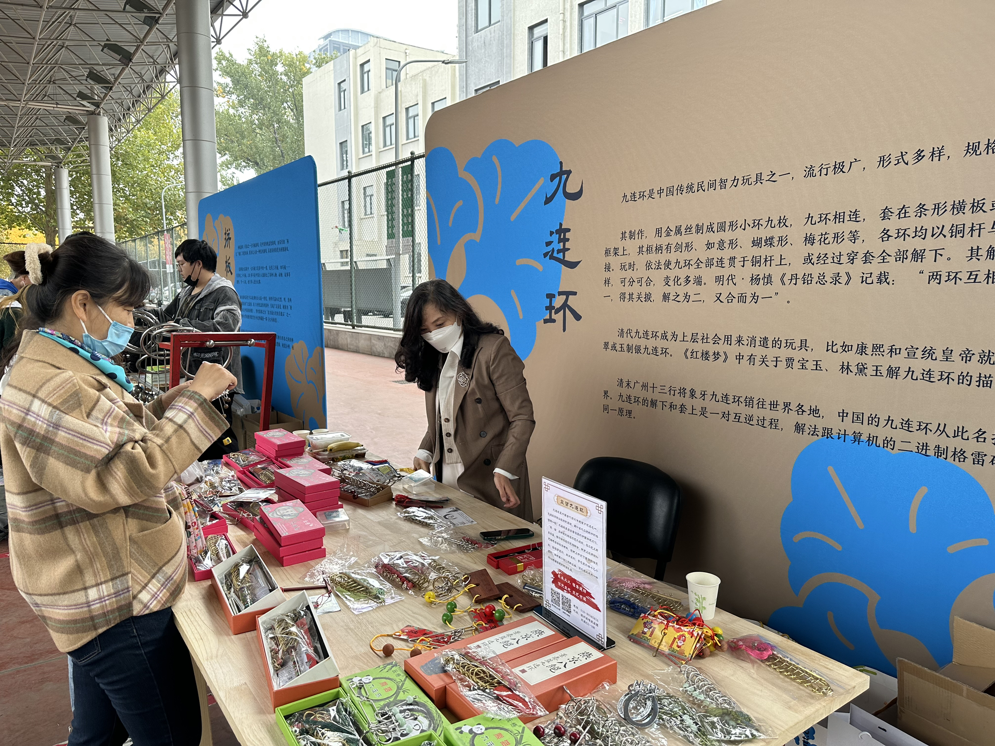 本次活动是学校第十八届“科学·艺术·时尚”节的重要组成部分。现场展示了风筝、九连环、翻花、民间棋、鲁班锁等历史悠久又传承创新的非遗项目。