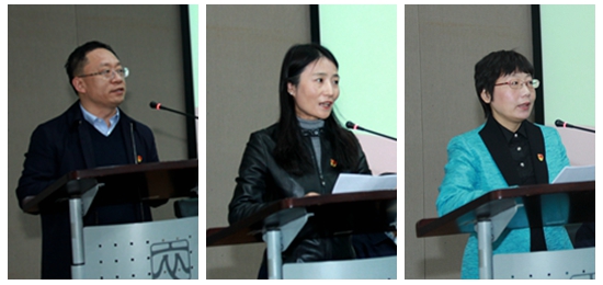 党委常委、组织统战部长殷文生,党委学生工作部长江建,艺术设计学院党委书记丁蕾作经验分享