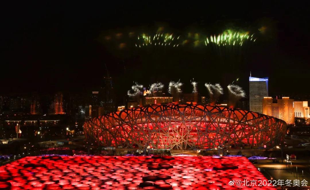 伴随着“我和我的祖国”悠扬的小号声,一面鲜艳的五星红旗在来自各行各业的群众代表手中传递。庄严的国歌响起,五星红旗缓缓升起,世界的目光聚焦于此。鸟巢上空一簇簇缤纷的烟花精彩绽放,绚丽的光景中,我仿佛回到了2008年北京奥运会。那时,万朵烟花在京城上空盛开,让5岁的我以为是银河降临。以前,家里长辈总会在守岁时点燃一箱49响的鞭炮,期盼来年平平安安。现在,一个人在离家千里的北京,看着向世界盛开的烟花,心中期盼着北京2022年冬奥会和冬残奥会的圆满成功,祝福祖国国泰民安,更加繁荣富强!