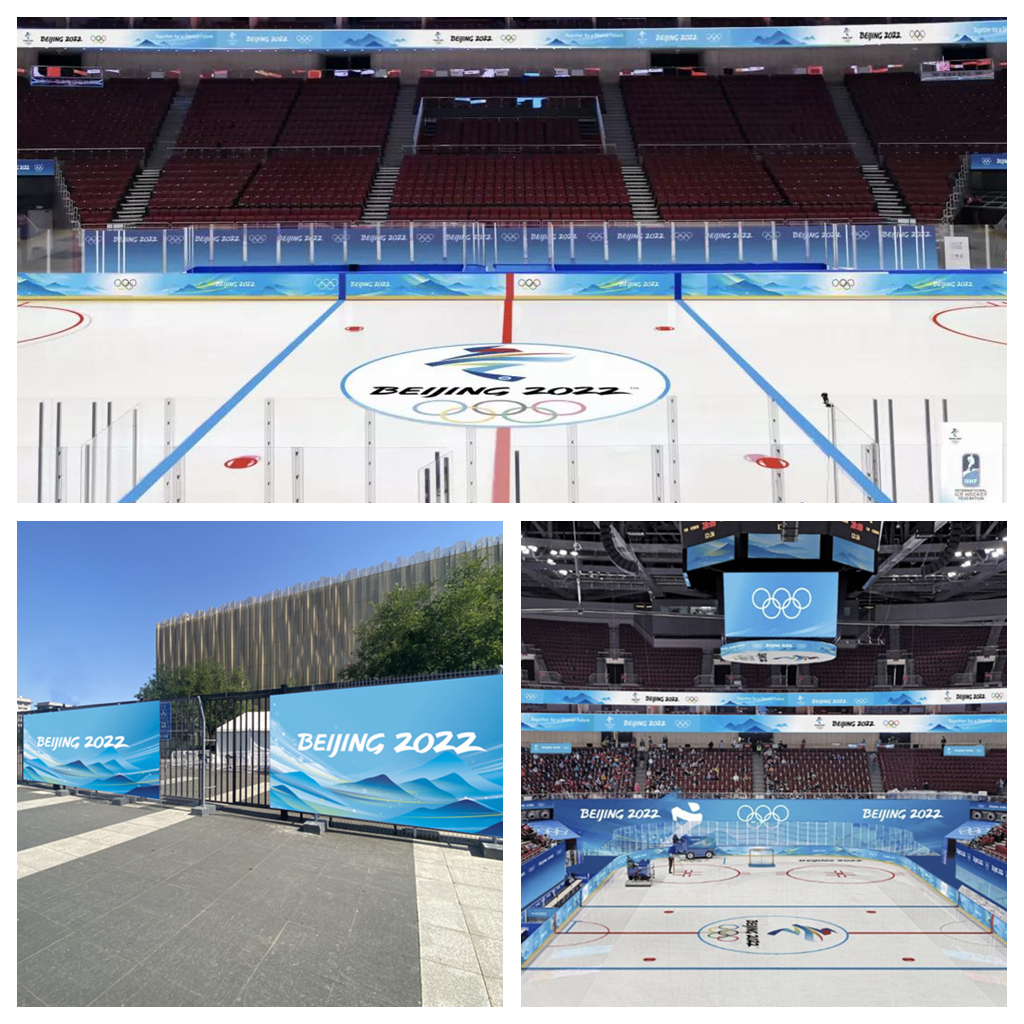 五棵松体育中心作为举办冬奥会冰球项目的场馆,其形象景观设计由bb贝博艾弗森官网与清华美院共同完成。形象景观以冰蓝色为主色,竹绿色为辅色。在场馆内外的FOP竞赛区,结合场馆屏幕、建筑立面进行设计,将动线、节点合理布局,营造有序且象征团结的景观,助力赛时氛围的营造。