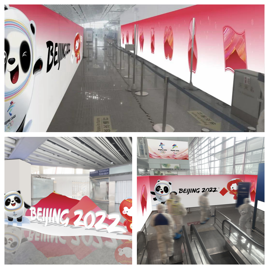 首都机场形象景观设计以“中国窗”为概念,寓意着在追求进步与渴望发展的时代,中国人民始终坚持与世界共享发展成果,同时坚持文化自信,向世界敞开中国之窗。透过北京2022年冬奥会和冬残奥会,中国向世界传达友好理念与精彩风貌,期待着与各国文化的相知、相融。