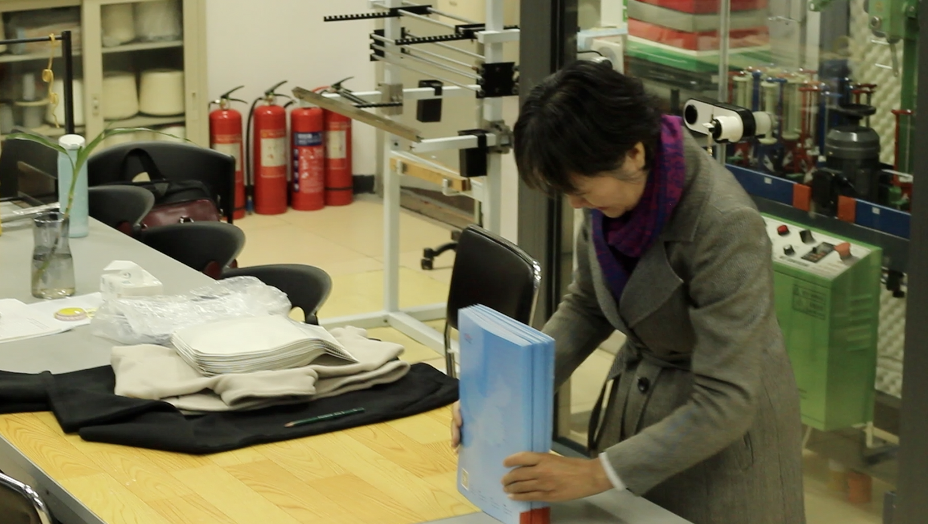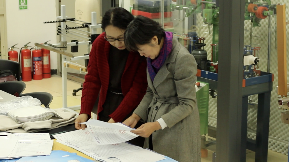 2019年是从里忙到外的一年。校外忙奔波调研、与各家企业接触,校内忙实验室研究、开发与检测。时间推进到2019年初的时候,我们开始对接多家企业,多方沟通,通过实地调研探寻科技面料落地的最大可实现性。因为要走访的企业很多,我们在调研中做到:每天至少走访两家企业。即使很多时候时间紧张,但是企业负责人都高度配合,抓住一切细碎时间帮助我们实现实地考察,带我们参观打样间,尽可能细致地为我们介绍面料性能、展示面料工艺。从北方到南方,从山东到江浙、广东、福建,所行之处都能感受到企业的高度配合与热情,还有“纺织人”的真诚、国民心系国家重大事件的热情。在调研、实验室研究过程中,我们还需要不断地与北京冬奥组委和安踏企业接洽,商定产品品类、以便准确定位各类服装材料。