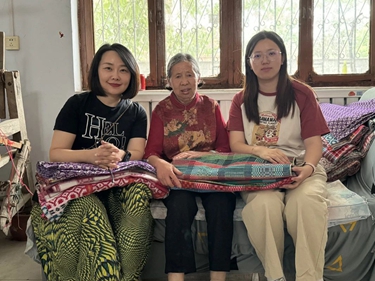 团队历时12个月完成此次系列的调研、设计、研发工作。前期,田野调查行程覆盖山东菏泽、济宁嘉祥、上海崇明、江苏南通等地,系统性整理了不同地域的土布织物织造技艺、组织结构、纹样特征、用色规律,建立了“样本数据库”; 在此基础上,通过织物组织软件设计,进行织物仿真模拟和创新组织结构生成;尝试从纺纱、色纱的重新配色完成新的织物设计与织造,探讨非遗纺织技艺的现代性再生。