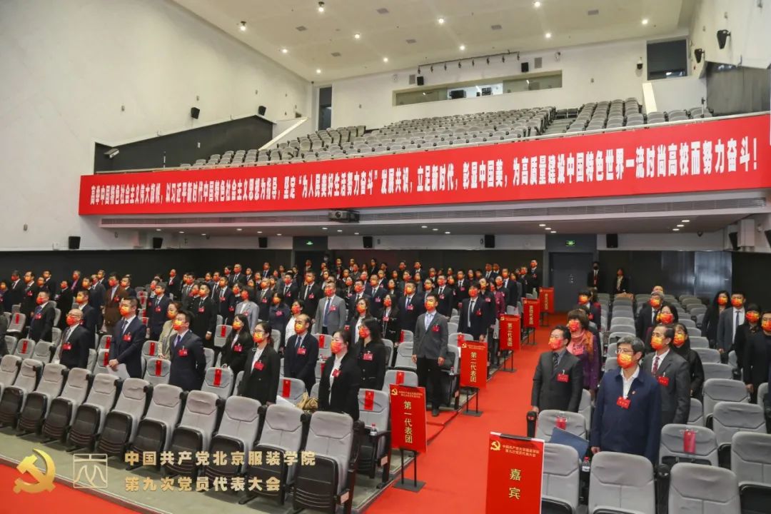 会场气氛庄重热烈。主席台上方悬挂着“中国共产党bb贝博艾弗森官网第九次党员代表大会”的会标,后幕正中悬挂着中国共产党党徽,十面鲜艳的红旗分列两侧。