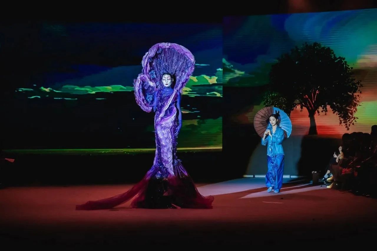 戏剧与影视服装设计展演成为全场焦点。时尚传播学院表演专业学生身着京剧蟒袍、武侠长衫等114套经典复刻与创新设计服装登台,26位北服毕业生以 “戏说新语” 为主题,通过大胆的结构设计、创新面料运用与先锋造型表达,让传统戏剧服饰焕发当代生命力,深度诠释 “为人民设计” 的理念,展现学校在戏剧影视服装设计领域的深厚底蕴与创新实力。