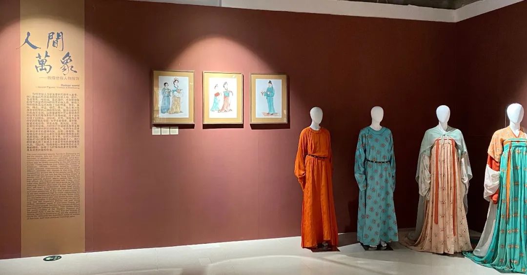 敦煌壁画和彩塑所呈现出来的服饰文化风貌,是中华服饰历史的重要组成部分,反映了中国古代人民杰出的艺术才能和生活智慧。本次展览是研究团队成员以敦煌石窟实地考察为基础,结合文献资料查证,根据敦煌壁画或彩塑图像整理绘制的人物服饰效果图和重点图案细节图,以及具有代表性的服饰艺术再现作品和创新设计作品。本展览是国家社科基金艺术学项目“敦煌历代服饰文化研究”的阶段性成果,也是《敦煌服饰文化图典》唐代卷的部分成果展示。