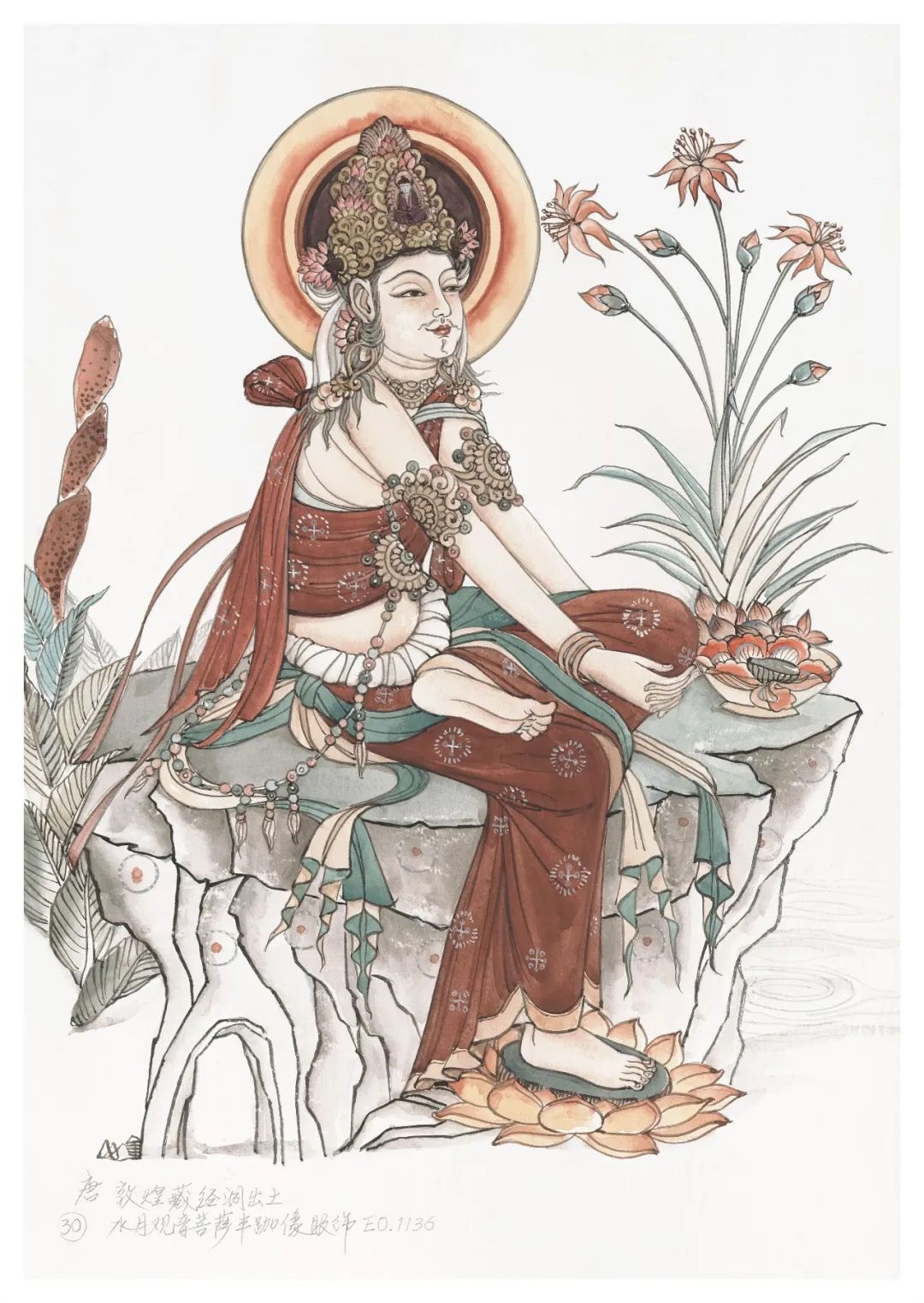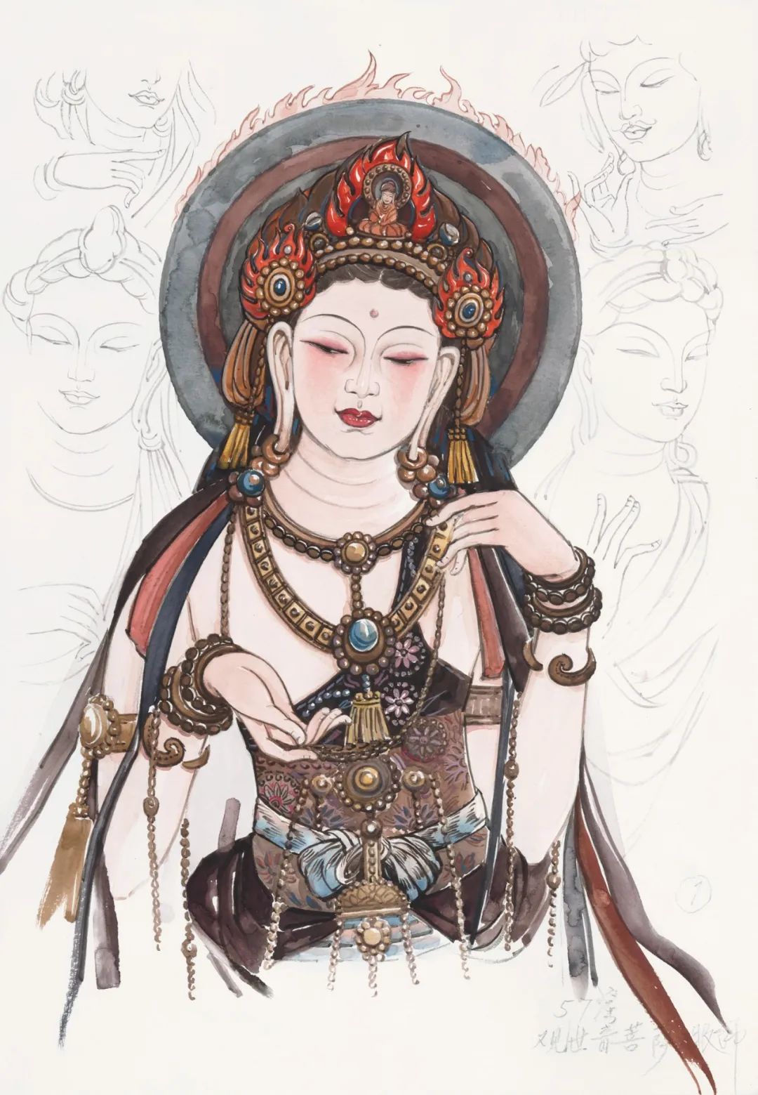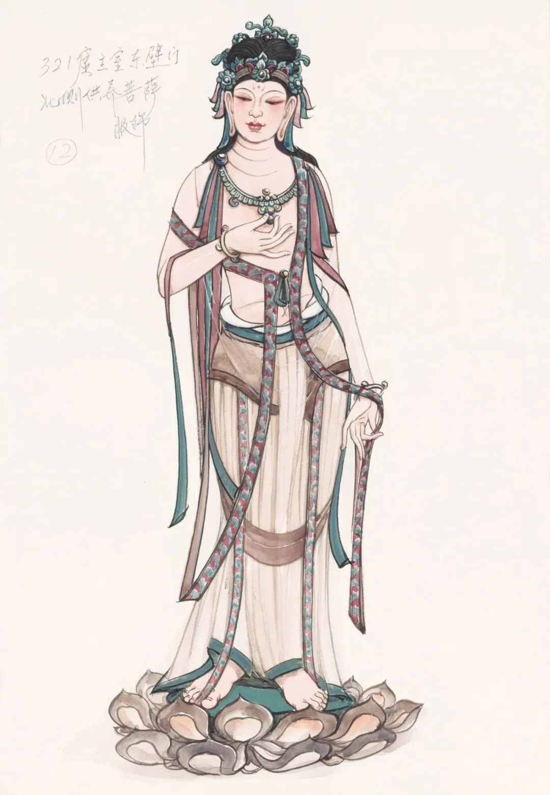 菩萨是菩提萨埵(梵文Bodhisattva)的略称,菩提意为觉悟,萨埵意为有情,凡修持大乘六度、求无上菩提、利益众生、于未来成就佛果的修行者都可以称为菩萨。敦煌壁画中的菩萨,或配合塑像绘制于佛龛内外;或绘于说法图、经变画中,有独尊式画像和群体式画像两类。