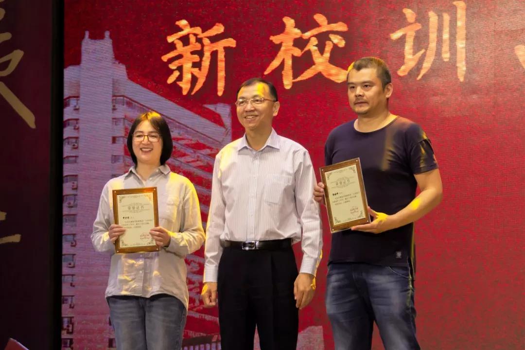 党委常委、副院长仲丛生为申卉芪(左一)、郭晓晔(右一)颁发证书