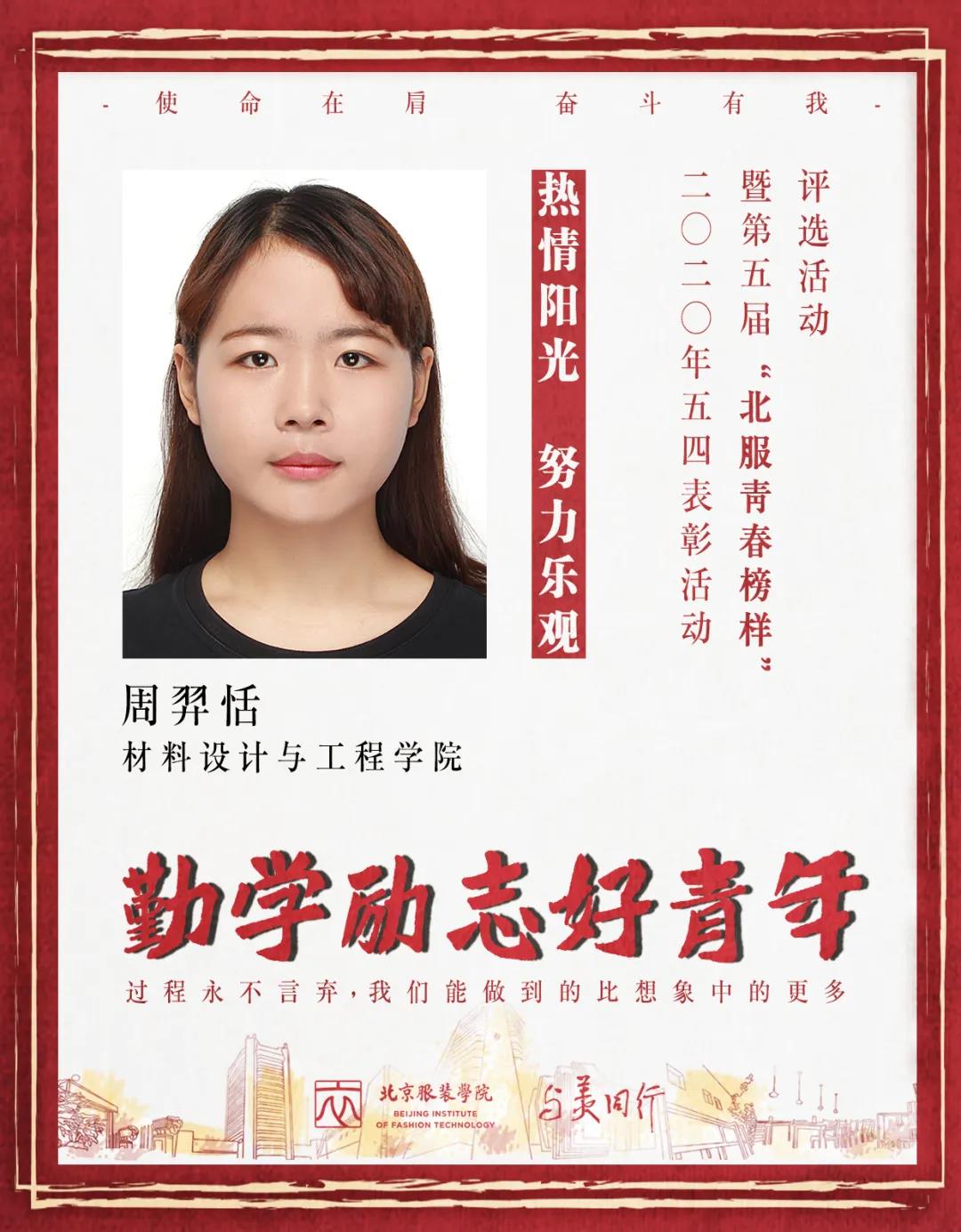她就是来自材料设计与工程学院的勤学励志好青年:周羿恬。