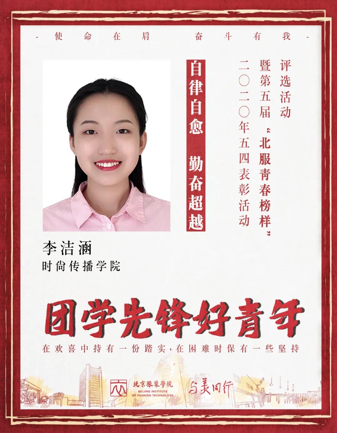 她就是来自时尚传播学院的团学先锋好青年:李洁涵。
