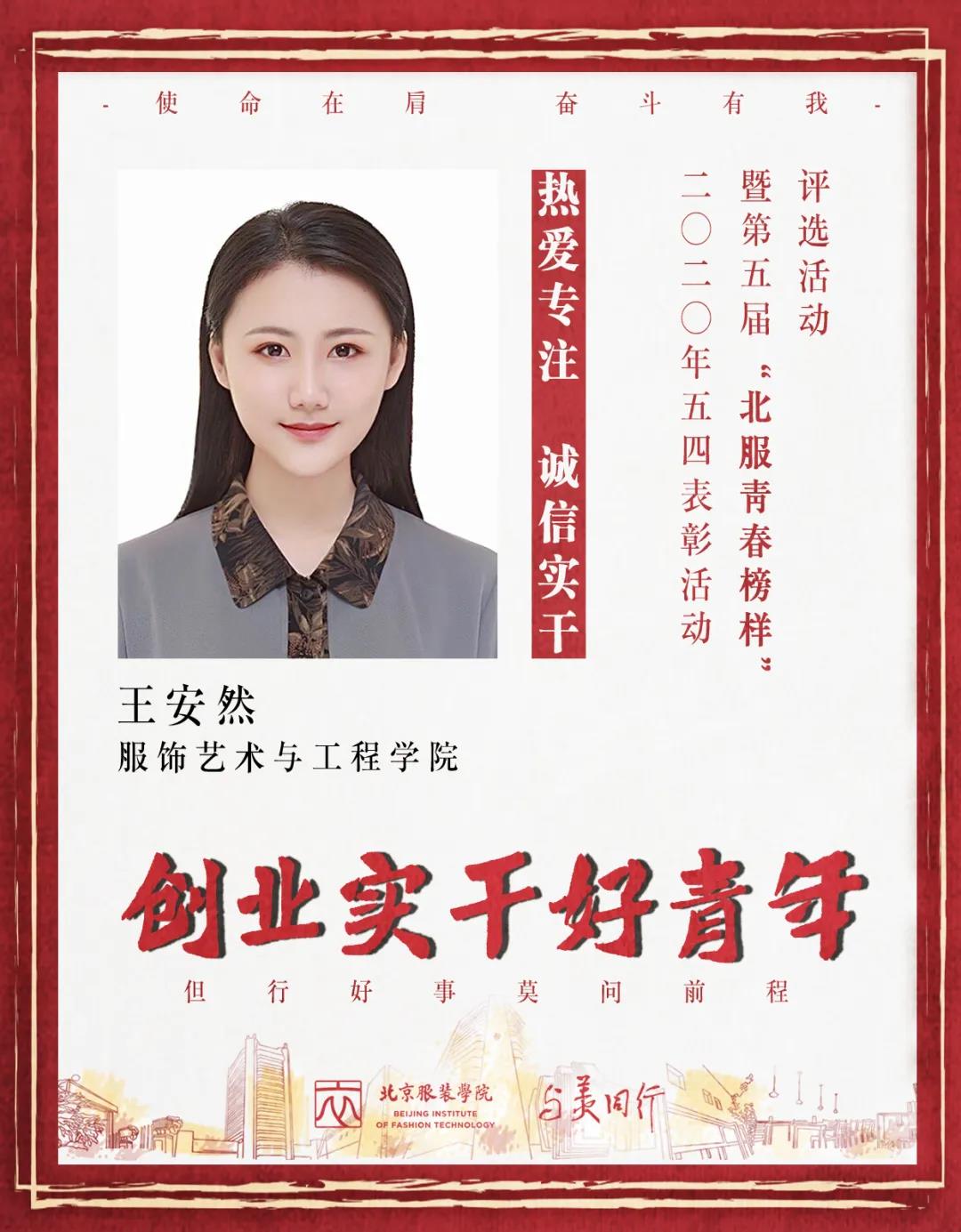 她就是来自服饰艺术与工程学院的创业实干好青年:王安然。