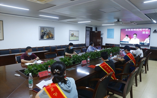 6月28日上午,北京高校庆祝中国共产党成立99周年表彰大会召开。市委常委、教育工委书记王宁同志出席会议并讲话,市委教育工委常务副书记郑吉春同志主持会议。我校在5号楼502会议室设视频分会场,院长贾荣林同志、党委副书记倪赛力同志出席,荣获这次表彰的先进党组织负责人、优秀共产党员、优秀党务工作者以及党委常委、组织部长殷文生同志,专职组织员、机关党委副书记王艳童同志参加会议。