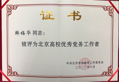 会上,北京市教工委副书记、教委主任刘宇辉同志宣读了《中共北京市委教育工作委员会关于表彰北京高校先进党组织优秀共产党员优秀党务工作者的决定》,我校1个基层党组织、1位优秀党员和1位党务工作者受到表彰。