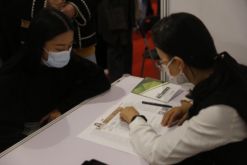 校党委副书记倪赛力来到双选会现场,与企业负责人进行了亲切交流,并对企业到校招聘表示欢迎和感谢。与深圳万旗服饰、锦鲤互动(北京)咨询有限公司(校友企业)等多家公司现场招聘负责人进行了详谈,了解企业选才、用人、培养、晋升等情况,向企业隆重推荐我校毕业生,参会企业纷纷表示北服毕业生的综合素质高,深受企业欢迎,企业希望与学校加强联系,进一步开展校企合作,为学生搭建实践平台,提前为企业做好人才的储备。各二级学院院长、党委(党总支)书记、副书记、辅导员等人也到双选会现场与企业交流,了解企业需求,推荐毕业生。我校在双选会现场设立了简历辅导和就业创业咨询台,由就业专家和就业老师为应聘学生提供简历辅导和就业创业政策咨询。部分企业于当天双选会后在校内组织了笔试、面试,以便更便捷、快速地招聘到心仪的毕业生。