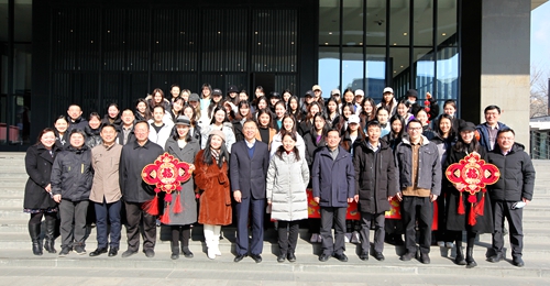 最后,校领导为学生代表赠送新春大礼包,送去了牛年的祝福,并与留校学生合影留念。