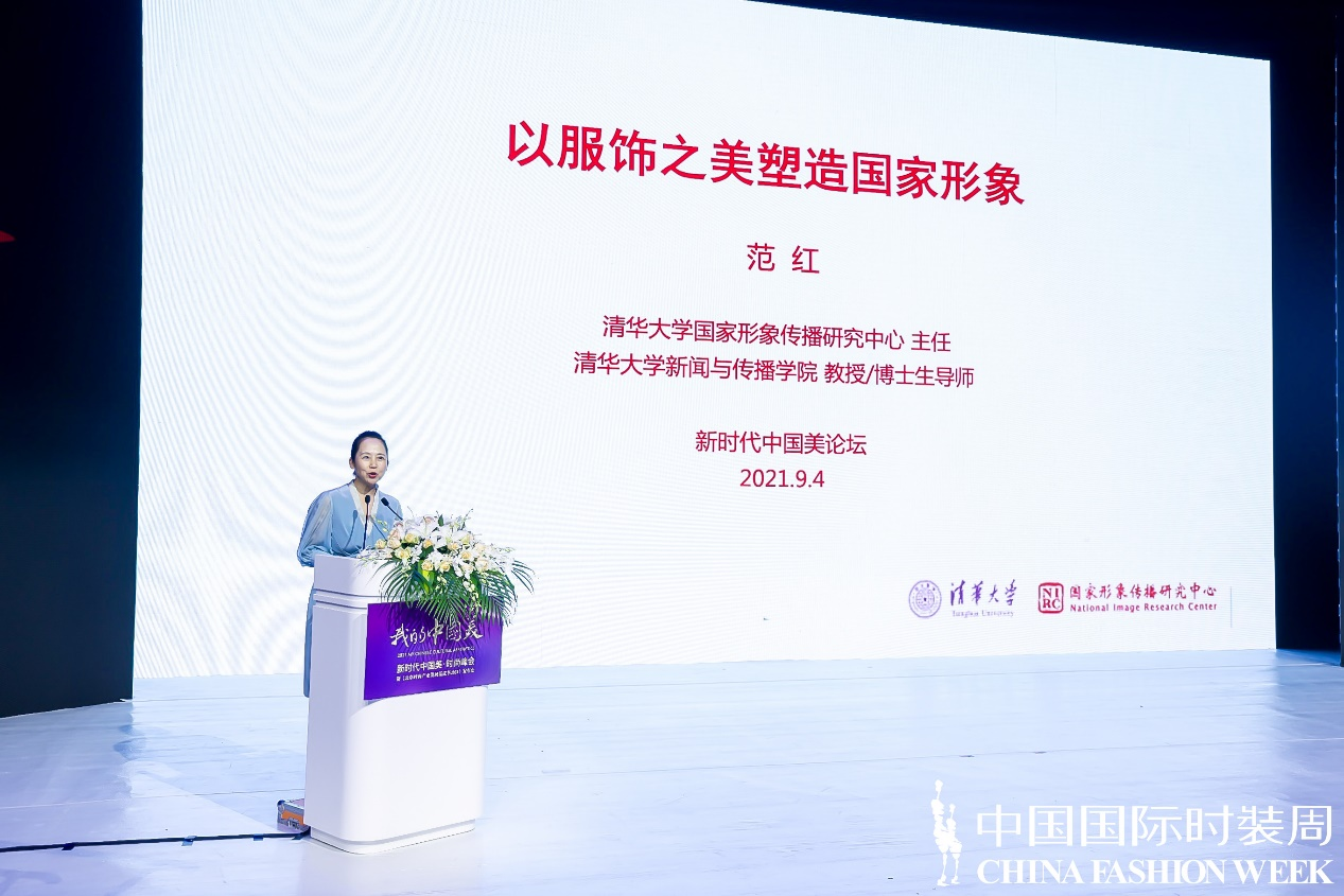 都海江先生立足国家、时代与人民的需求,从传统文化的创造性转化与创新性发展角度阐述了“中国美”的深刻文化内涵与现实意义;刘成纪先生从美学的学术视角深刻论述了美在中国文化中的重要位置;范红教授从国家形象角度详细讨论了服饰之美对于塑造国家形象的必要性与重要性;刘畅先生从时尚美学与传播的视角出发,立足于企业的具体实践与案例,深入讨论了当代时尚美学在传播中的表现、特点与机制。最后,楚艳教授基于服装设计视角,从颜色、形式、理念、风格等方面深度探讨了新时代中国美与中国服饰具有的深刻意涵。