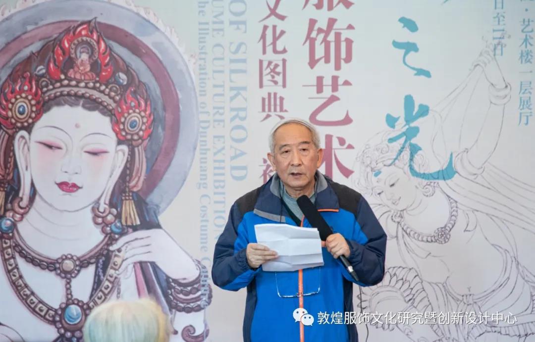 柴剑虹先生发表致辞。他非常高兴能在此次展览中领略了敦煌服饰艺术风采,了解和学习了敦煌服饰研究和创新设计可喜的成果。他认为敦煌服饰艺术研究任重而道远,大家在传承和传播敦煌服饰文化的同时,需要共同努力探索新时代的服饰创新设计的典型,让古典的敦煌服饰文化走入当今时尚生活之中,为提升人们日益丰富的物质需求,为满足人们对于美好生活的向往做出努力。