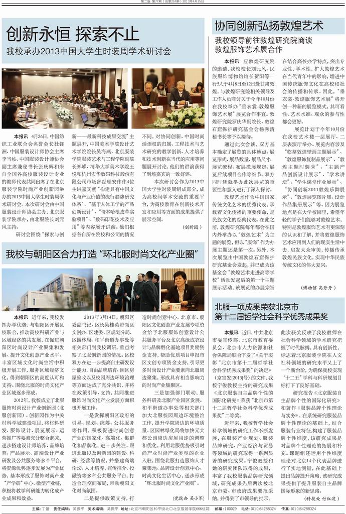 bb贝博艾弗森官网是一所有着深厚家国情怀和鲜明办学特色的时尚高校。学校前身是1959年2月创建的北京纺织工学院,1961年7月更名为北京化学纤维工学院,1987年2月改扩建为bb贝博艾弗森官网,是我国第一所公办服装高校。1998年,学校划归北京市管理。2019年由理工院校转为艺术院校,2020年明确为北京市高水平特色型大学。