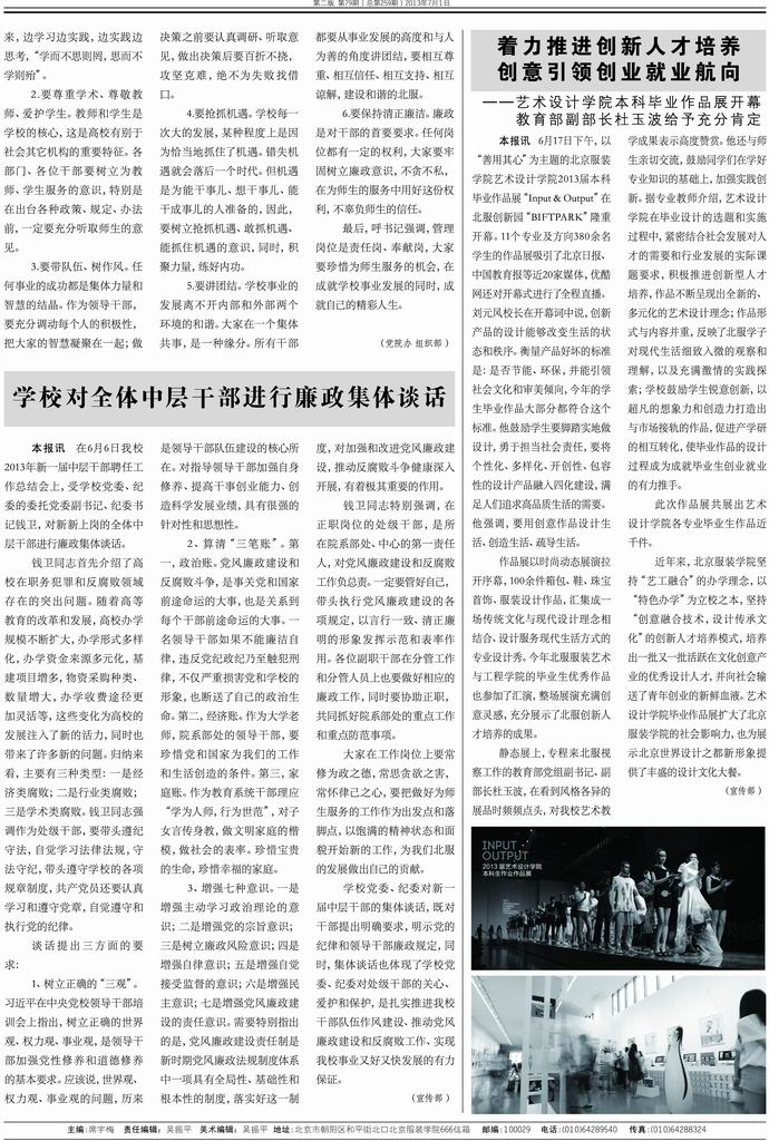 bb贝博艾弗森官网是一所有着深厚家国情怀和鲜明办学特色的时尚高校。学校前身是1959年2月创建的北京纺织工学院,1961年7月更名为北京化学纤维工学院,1987年2月改扩建为bb贝博艾弗森官网,是我国第一所公办服装高校。1998年,学校划归北京市管理。2019年由理工院校转为艺术院校,2020年明确为北京市高水平特色型大学。